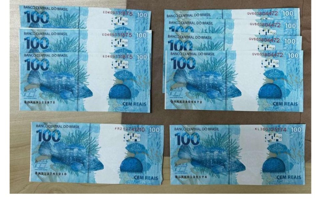 Foram apreendidas 13 cédulas falsas de R$ 100 e 42 cédulas falsas de R$ 20, totalizando R$ 2.140. O material será encaminhado para análise pericial da Polícia Federal.