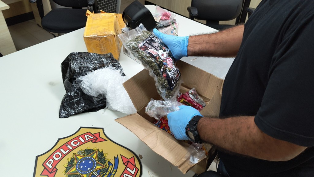 Durante a inspeção, os policiais observaram que as substâncias ilícitas estavam camufladas de diferentes modos no interior das encomendas: misturadas com salgadinhos e doces, em uma manta e dentro de uma caixa de som.