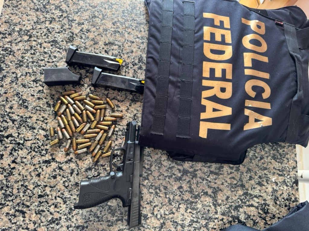Durante o cumprimento do mandado em Foz, foram localizados uma arma de fogo e inúmeras munições sem nenhuma documentação legal. O responsável pelo imóvel foi preso em flagrante e encaminhado para a Delegacia de Polícia Federal em Foz do Iguaçu.