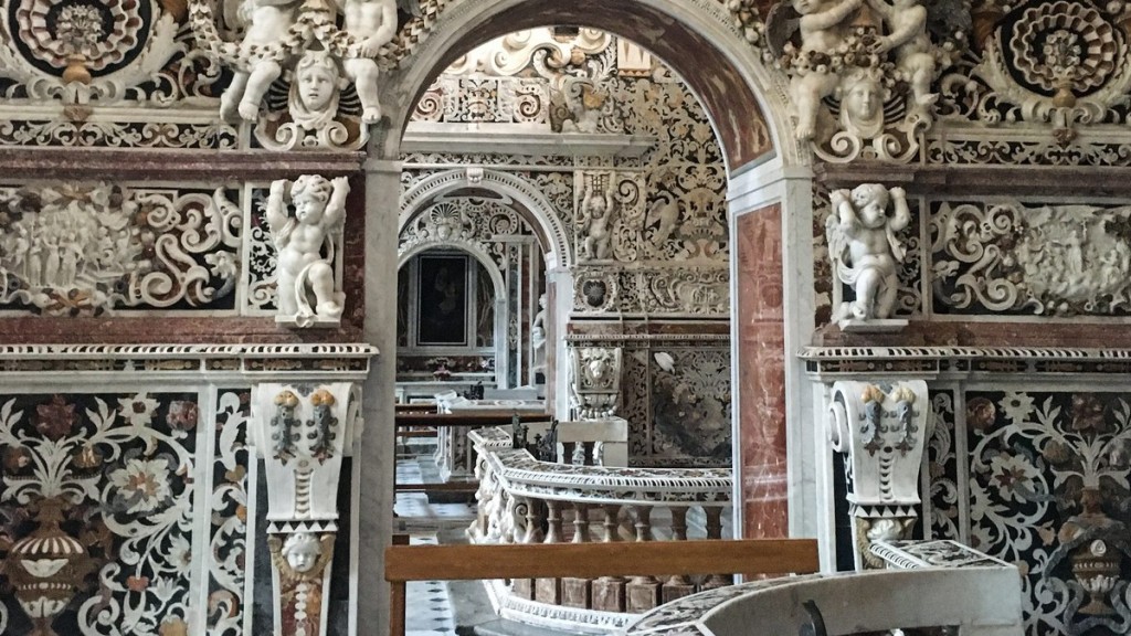 Todas as paredes e colunas são revestidas com esculturas, incrustações policromadas, ornamentos de mármore, estuques e afrescos criados por uma série de artistas renomados, como Ignazio Marabitti, Vito D’Anna, Giacomo e Procopio Serpotta e Pietro Novelli. A arte ilustra cenas bíblicas e retrata, principalmente, Jesus e Maria. Veja alguns detalhes no vídeo abaixo: