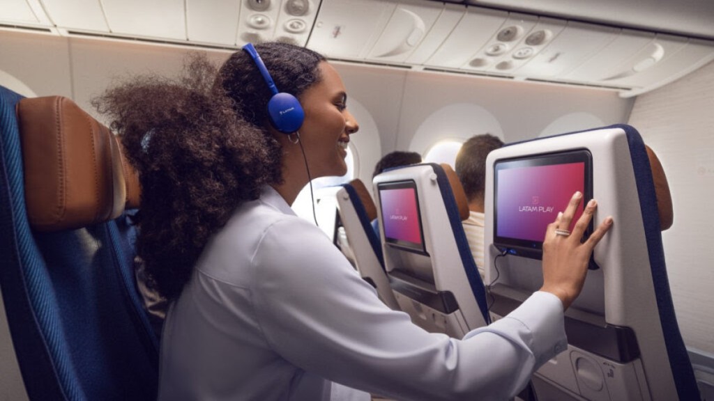 Nos vooss da Latam o cliente tem acesso gratuito a mais de 300 filmes e mil episódios de séries, com conteúdos de plataformas, como Disney+, Max e Paramount+.