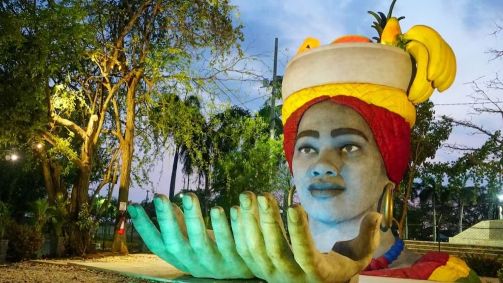 A cidade de Cartagena, na Colômbia, inaugurou mais um ponto turístico da região: a maior estátua de Mulher Palenquera do mundo. A escultura de 8 metros de altura fica no Parque de la Marina, no centro histórico da cidade.
